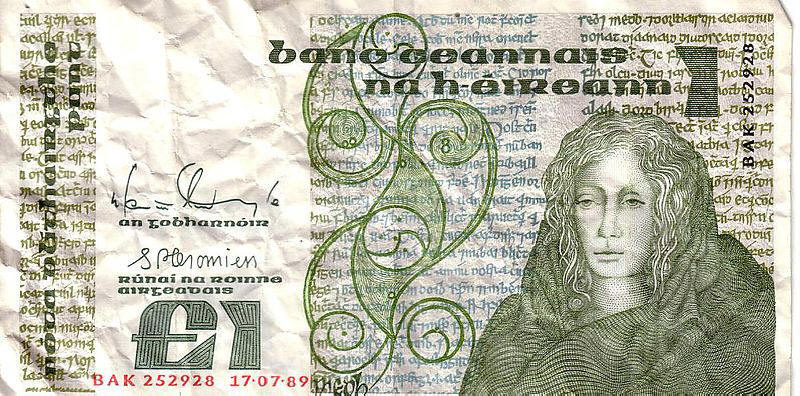 Vorderseite der zuletzt gülten irischen 1-Pfund-Banknote